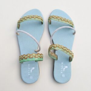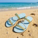 Bring a splash of color to your summer wardrobe with our Blue Mist sandal. This flat, easy-to-wear slide features a soft light blue base with forest green straps and sparkling pearl silver glitter accents. Perfect for beach days, casual outings, or just adding a touch of playful elegance to your everyday look. Comfortable, stylish, and effortlessly chic.